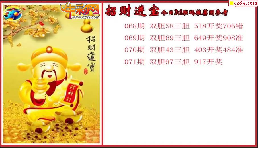 26年071期3d 招财进宝今日胆码推荐图参考