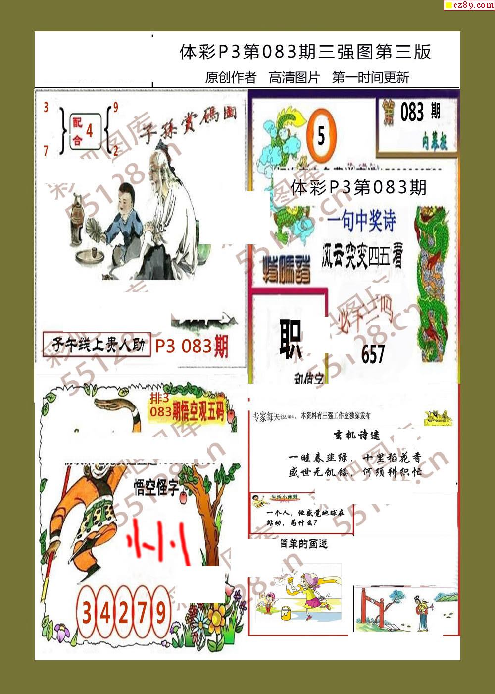 > 三强图系列083期体彩p3图谜